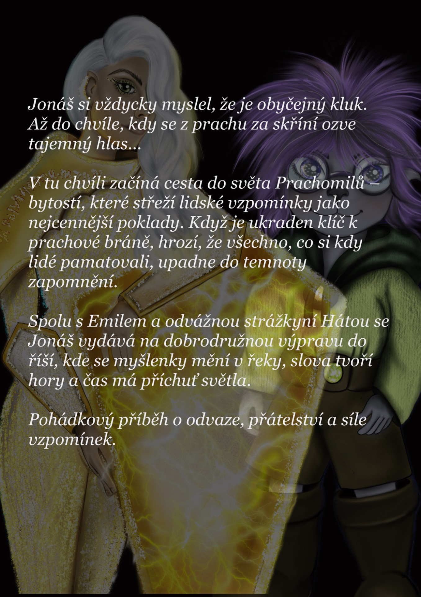 Jonáš si vždycky myslel, že je obyčejný kluk. Až do chvíle, kdy zpoza skříně uslyší hlas šeptající jeho jméno. V tu chvíli začíná cesta do neviditelného světa Prachomilů – bytostí, které chrání lidské vzpomínky jako nejcennější poklady.