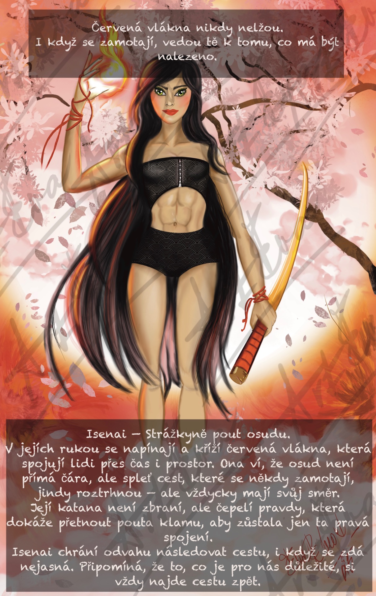 Součástí je také autorská kartička s ilustrací Isenai, která náramek doplňuje jako talisman i příběh.