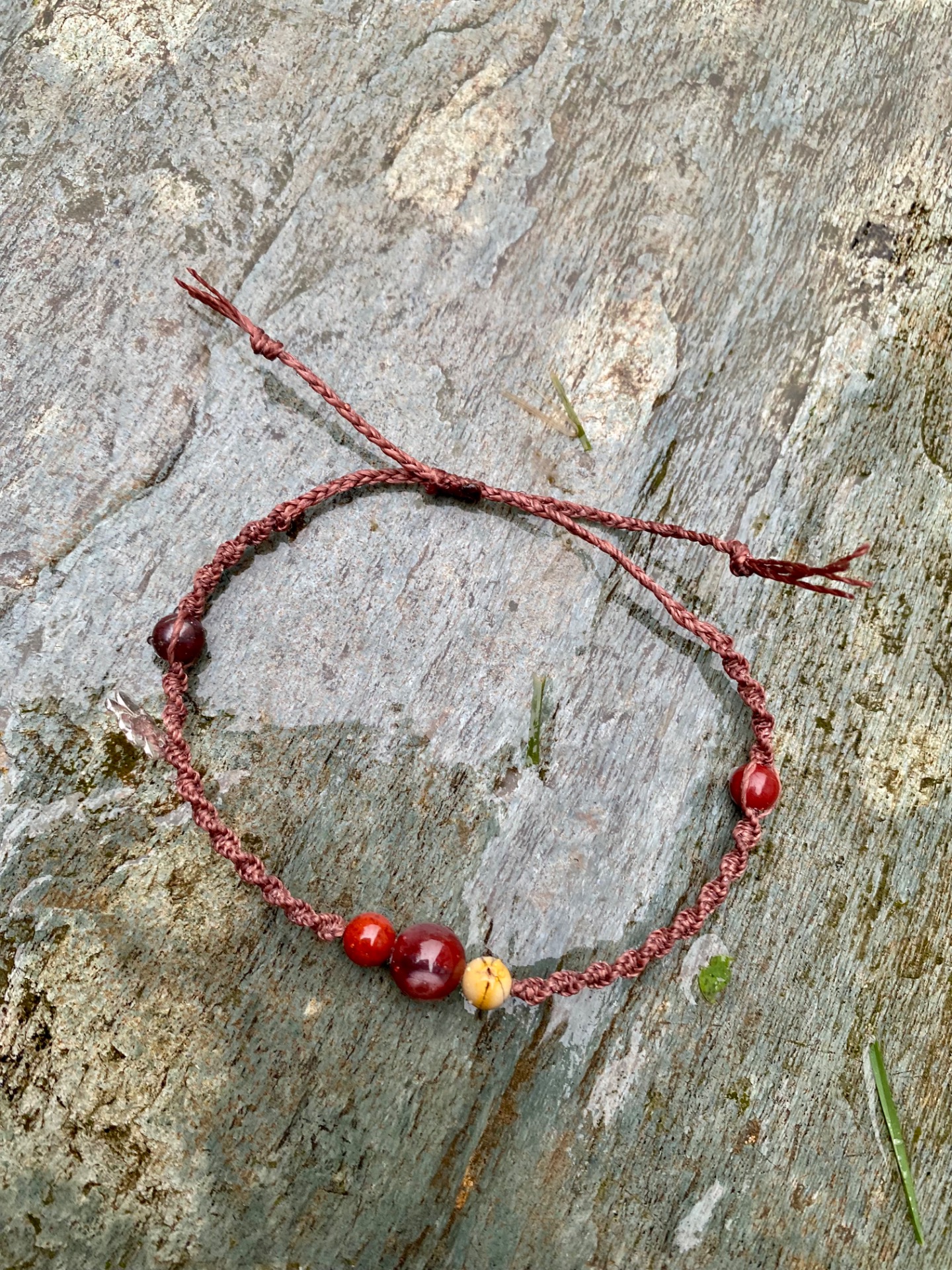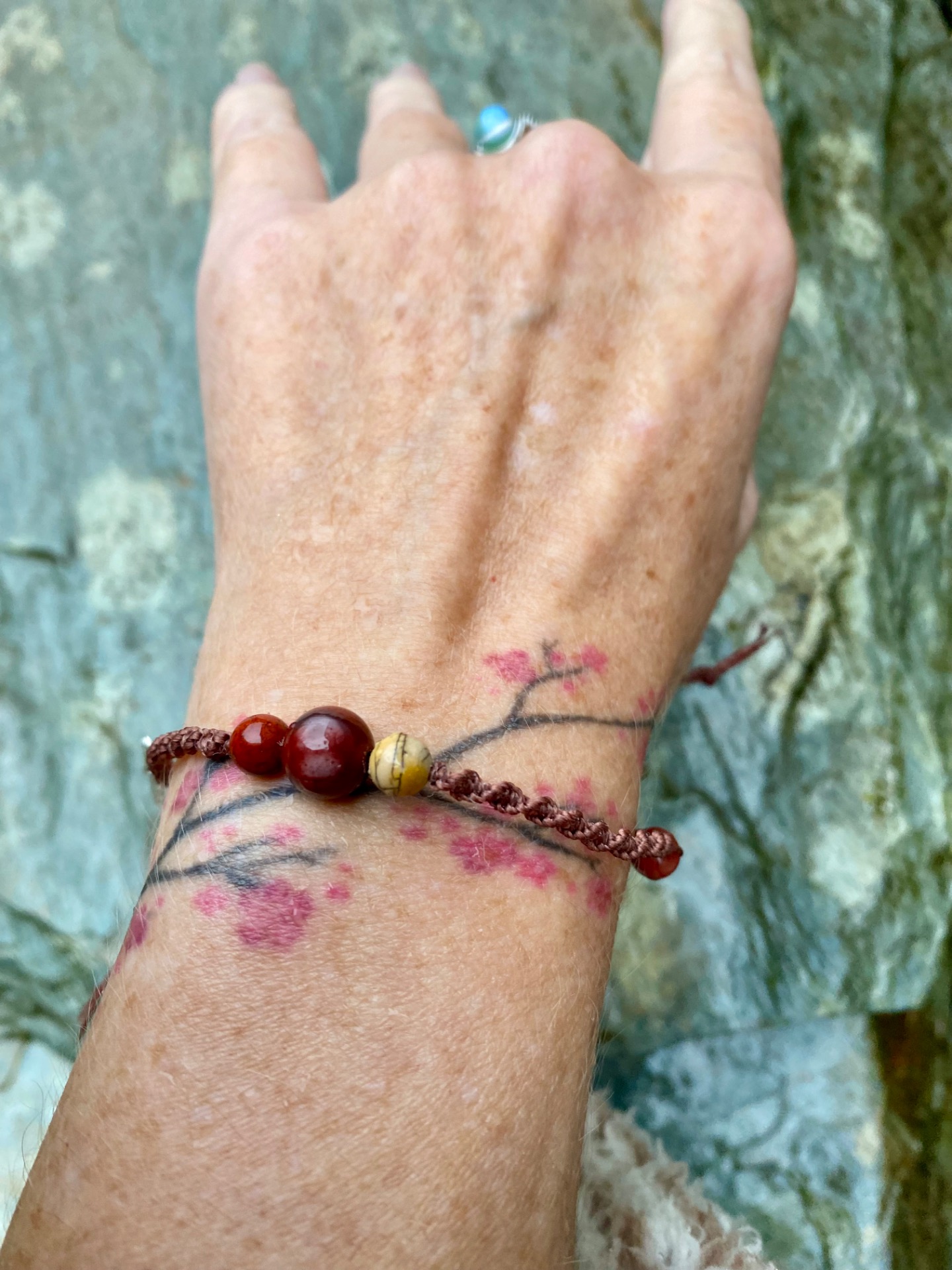 Náramek v teplých odstínech hlíny, se zemitými tóny jaspisu symbolizuje stabilitu, trpělivost a ochranu.