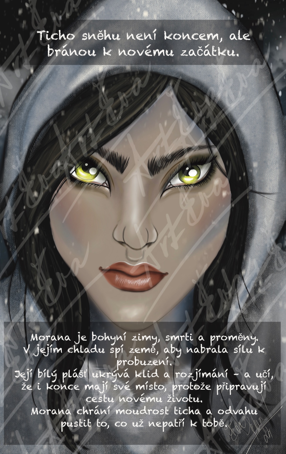 Morana je bohyní ticha, zimy a proměny. Učí nás přijímat konec jako součást koloběhu,