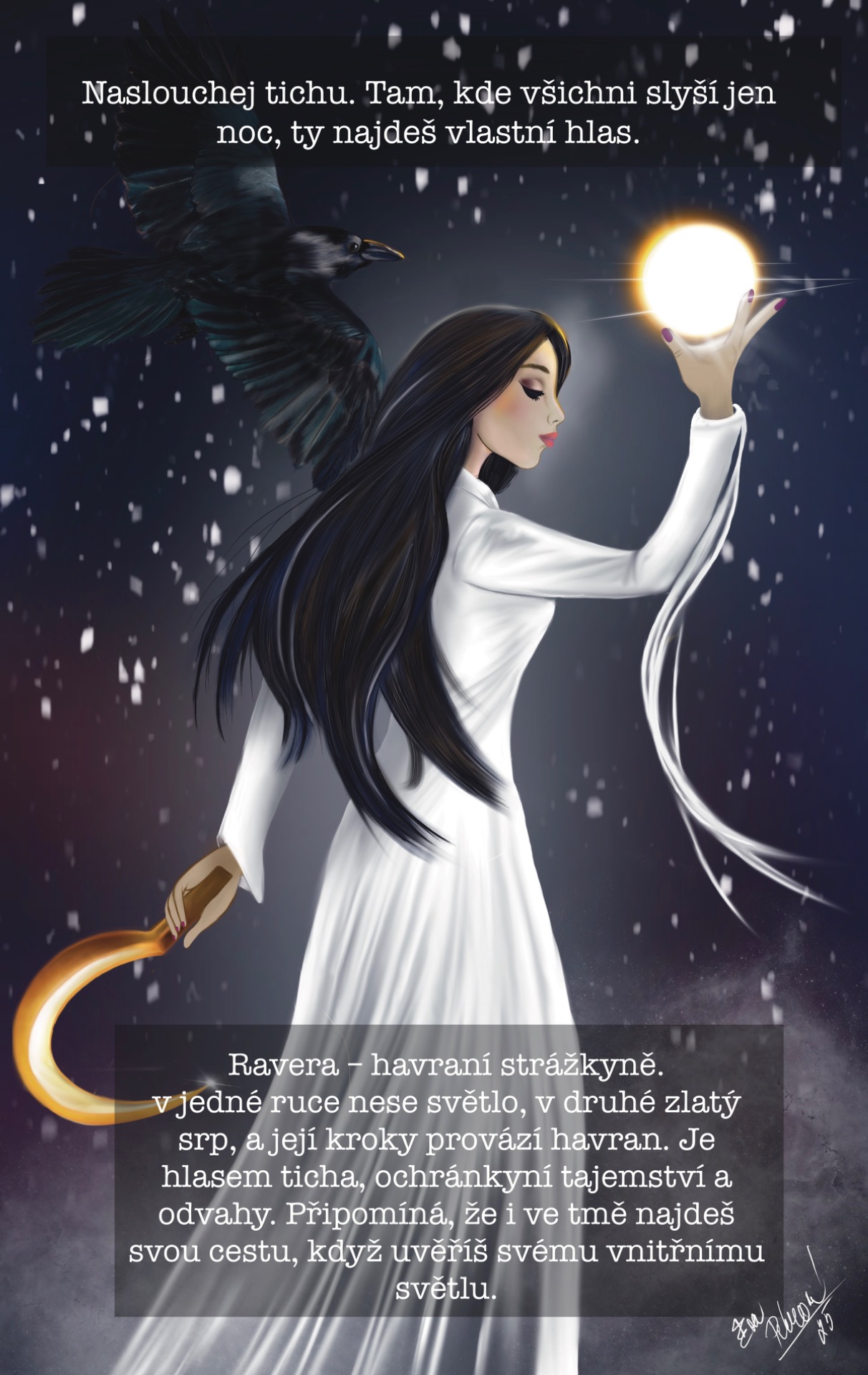 Součástí je také autorská kartička s ilustrací Ravery, která náramek doplňuje jako talisman i příběh.